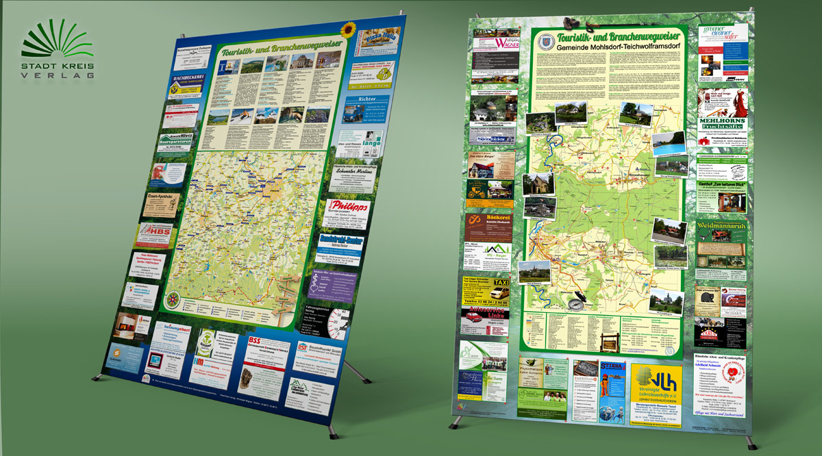 Unsere Faltpläne sind die idealen Werbeträger für Gewerbetreibende in ihrer Region und bieten Bürgern und Touristen eine gute Orientierungshilfe. So findet jeder schnell ans Ziel und kann zum Beispiel Wanderaufenthalte noch mehr genießen.