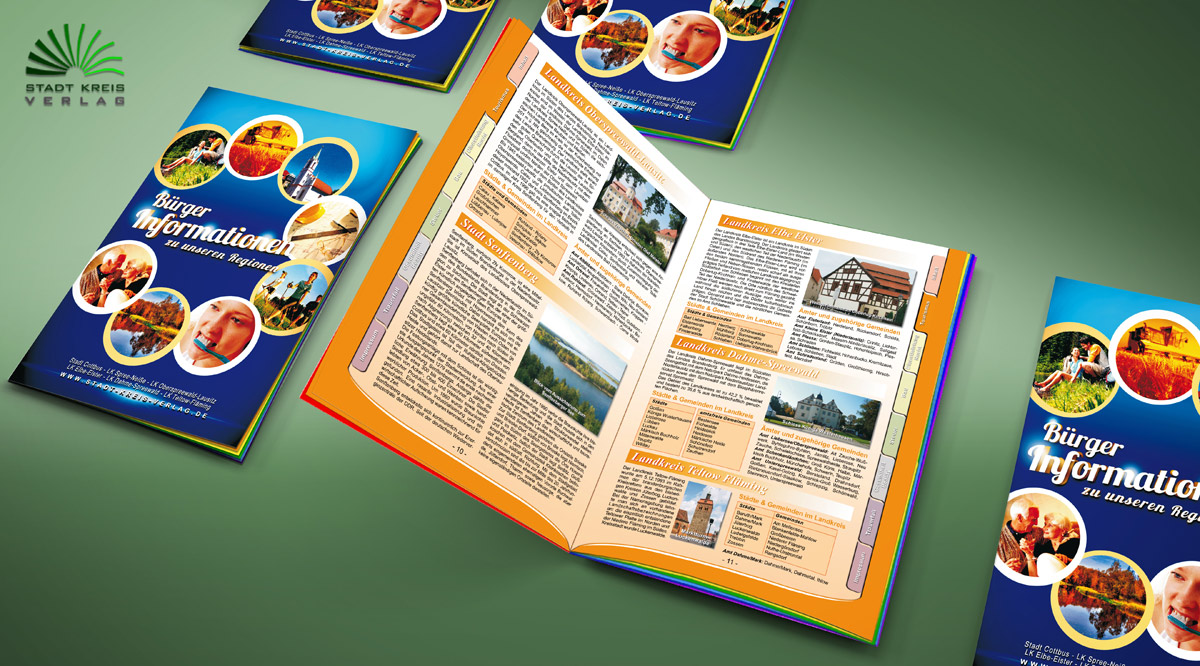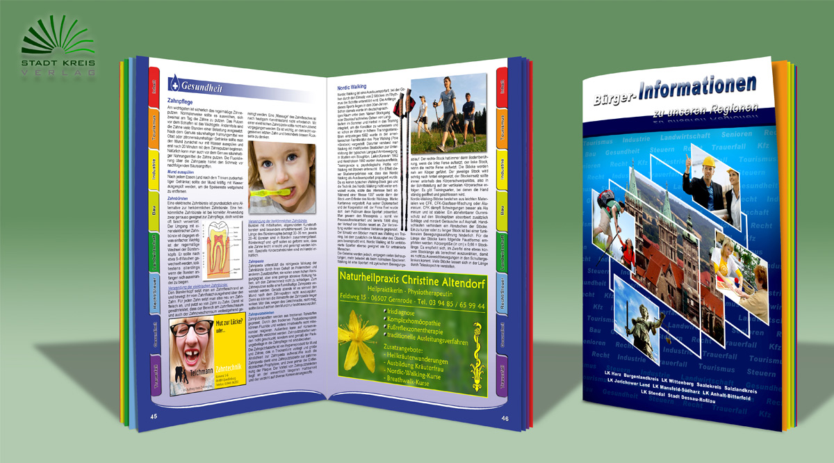 Die Bürgerbroschüren beinhalten desweiteren ein Branchenverzeichnis um empfehlenswerte Unternehmensbeschreibungen schnell und einfach zu finden und ein Ihnhaltsverzeichnis um die umfassenden Angebote darzustellen. Außerdem wird über die mögliche Inanspruchnahme des Systems der 1. Hilfe, sowie die dazugehörigen Notrufnummern informiert.